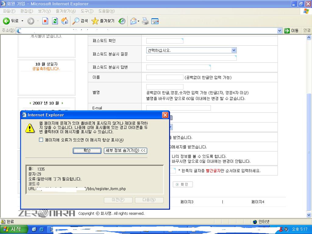 한글 제나빌더 UTF-8버젼에서 회원가입시 에러납니다..