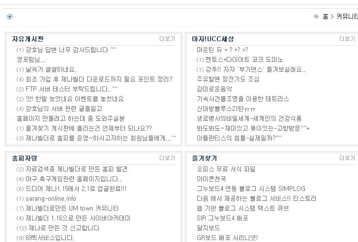 그룹테이블에서 최근게시물중 특정게시판 안나오게 제외하는방법은?
