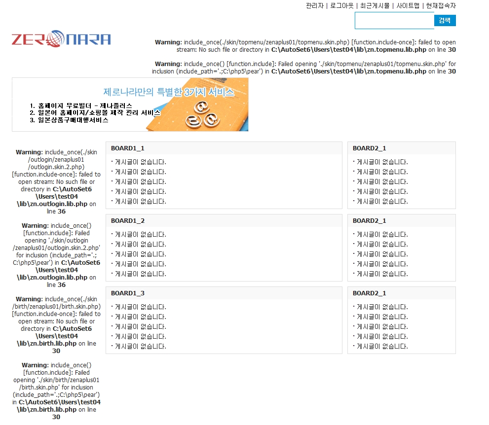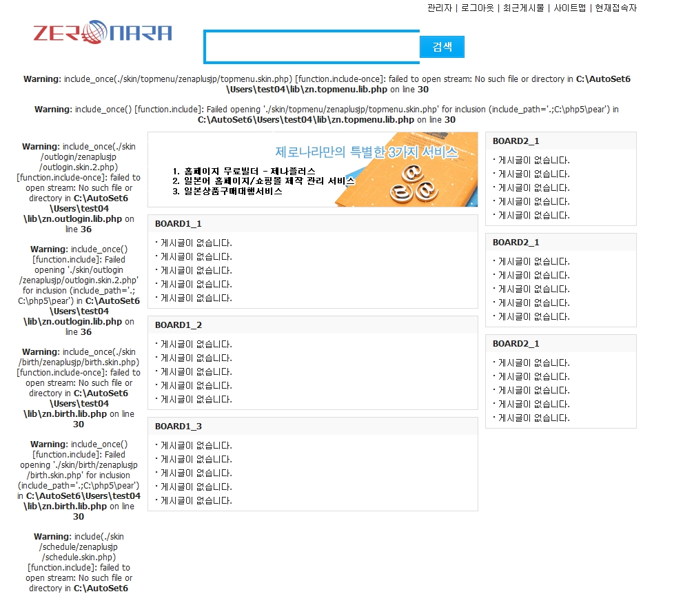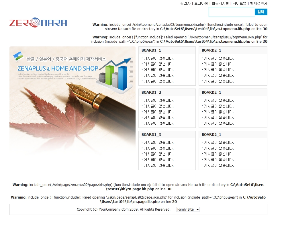 zenaplus01, zenaplus02, zenaplusjp 템플릿 스킨 적용하면 상단과 아래부분 에러 생깁니다.