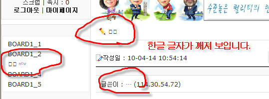 20100320 제나 빌더 설치후 제목란이나 작성자 이름 란 게시판 이름 란등 한글은 전부 깨지는 증상이 있습니다.