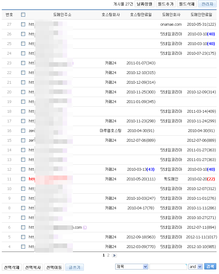 제가 쓰는 호스팅 몇 개 안되지만 관리를 위해 ㅋㅋ