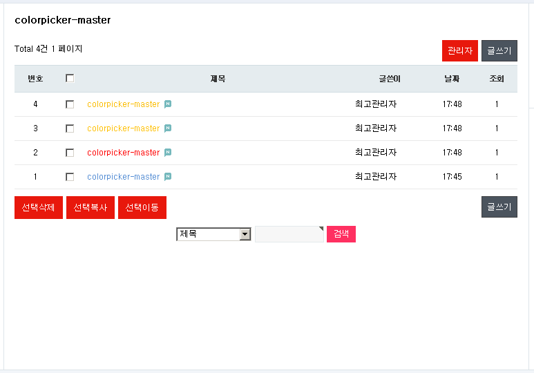 tinycolorpicker-0.0.7 타이틀 색 변경가능 > 스킨