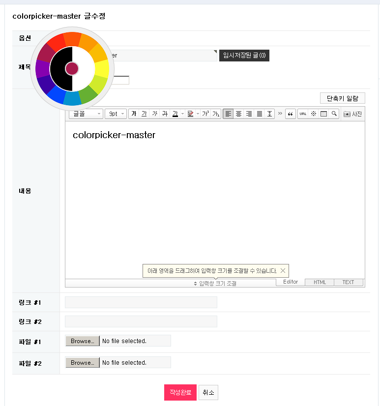 ​​Tiny Colorpicker을 통해서 지정된 색으로 제목을 색을 변경할 수 있습니다.