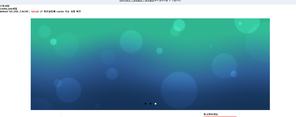 define('G5_USE_CACHE', false); // 최신글등에 cache 기능 사용 여부