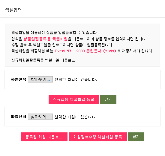 기타 회원엑셀 다운로드 및 업로드