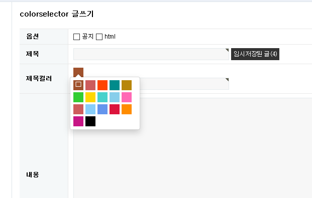 board Lightweight jQuery Color Picker Colorselector 이용한 제목글씨 바꾸기