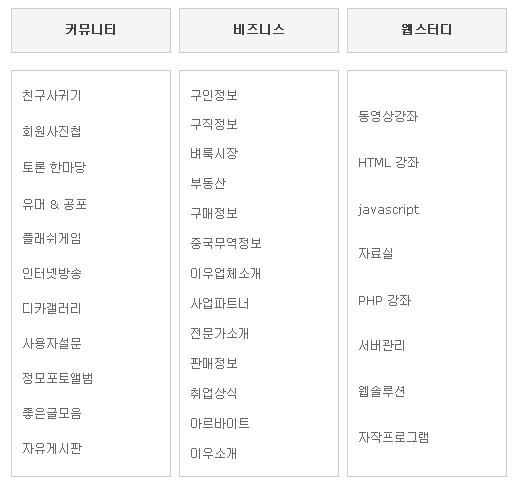 board 자동출력 메뉴, 자동출력 사이트맵 모두다 가능한 스킨