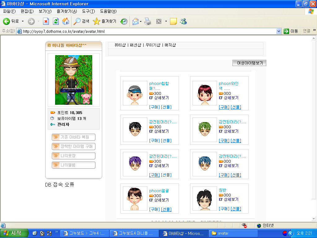 미니돌 아바타 2.6 그누보드 연동 최종판 > 스킨