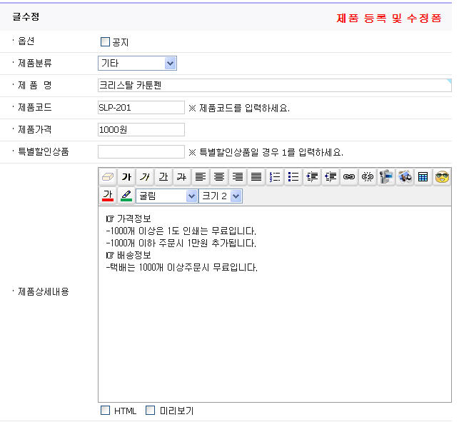 아래의 제품주문 게시판스킨과 관련하여 만들어 본 것입니다.