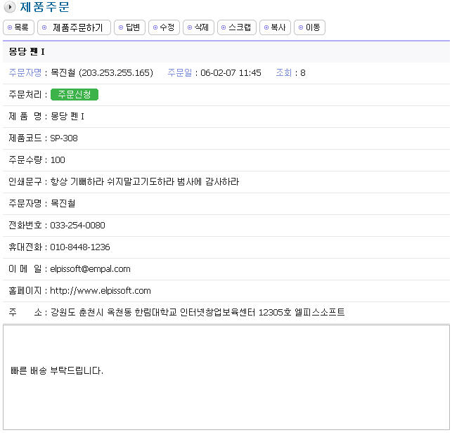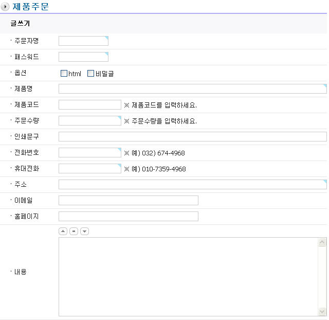 간단하게 만들어본 제품주문하기 게시판입니다.
