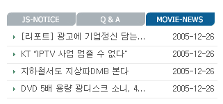 <DIV id=c style="DISPLAY: none"> <? echo latest("main_board_wr_1", bs_tv1, 4, 30); ?></DIV></td> </tr></table>