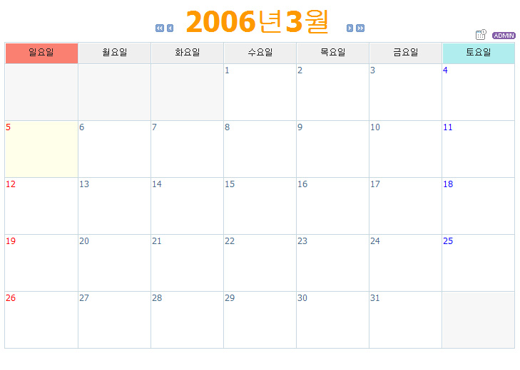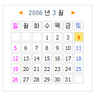 2.메인추출달력에서 2006 즉 년도를 클릭하면 일정관리 게시판으로 링크, 월을 클릭하면 이번달,