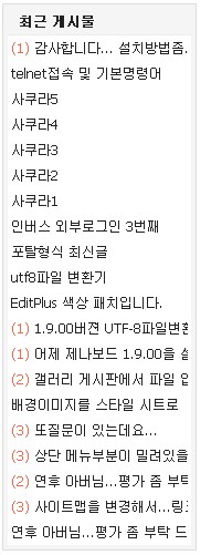 출력방법 첨부파일을 압축해제 후 extended 폴더에 넣고 출력하고자 하는곳에 <?php echo my_new("20", "100"); // "줄수", "글자수"?>