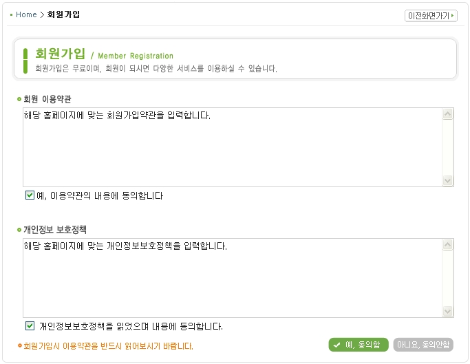 회원통합스킨 - 개인정보보호정책 추가 > 스킨