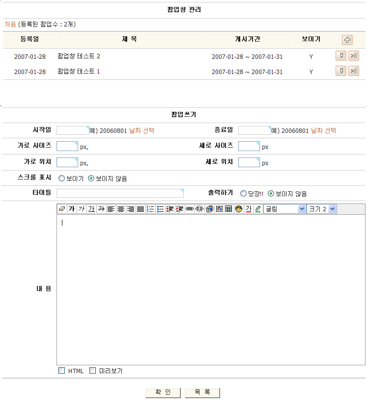 기타 팝업창관리 스킨 (일반관리자용)