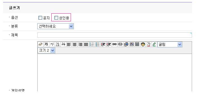 성인글 옵션생성 원본 수정 필요없음 > 스킨