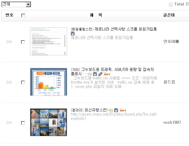 board 내용출력형 스킨 갤러리