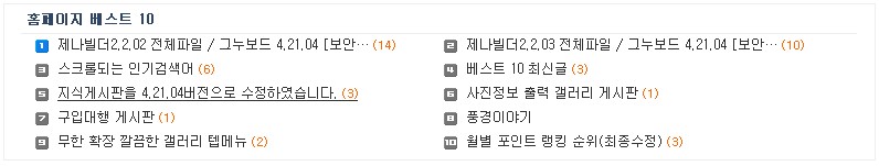 각 그룹 인기 최신글 자동 두줄 > 스킨