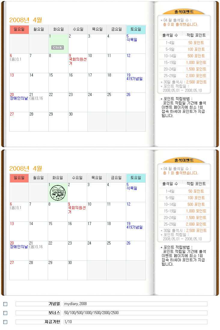 [기타] 출석부 보너스 포인트 게시판 > 스킨