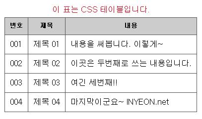 <caption>이 표는 CSS 테이블입니다.</caption>