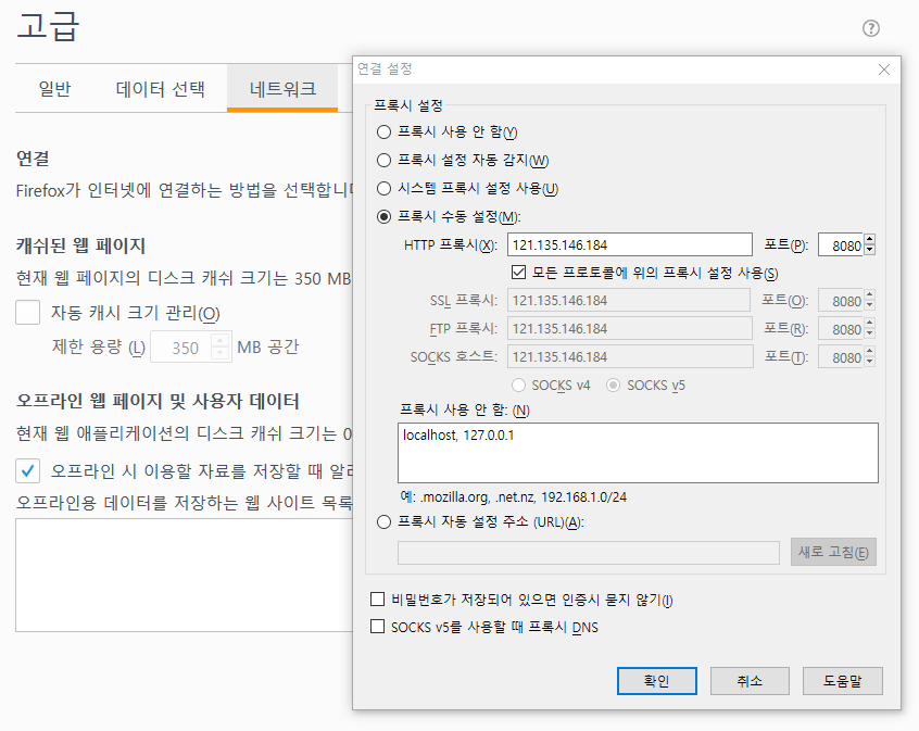 에 접속하여 프록시 아이피를 얻어서 적용합니다..